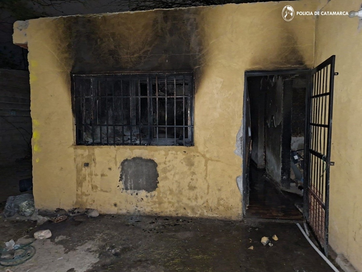 El foco ígneo se originó en el interior de una habitación del inmueble y los policías intentaron extinguirlo hasta la llegada de los Bomberos, quienes sofocaron las llamas que causaron daños materiales totales.
