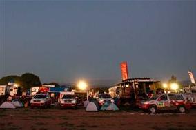 El bivouac despierta vacío. Las principales estructuras ya están armadas y aguardan la llegada de los integrantes del Dakar. De a poco, arriban los equipos. Cada asistencia se instala y demarca una zona con cintas plásticas, donde estacionarán los vehículos de competición por la tarde o la noche, cuando arriben, en el mejor de los casos, al completar la etapa.