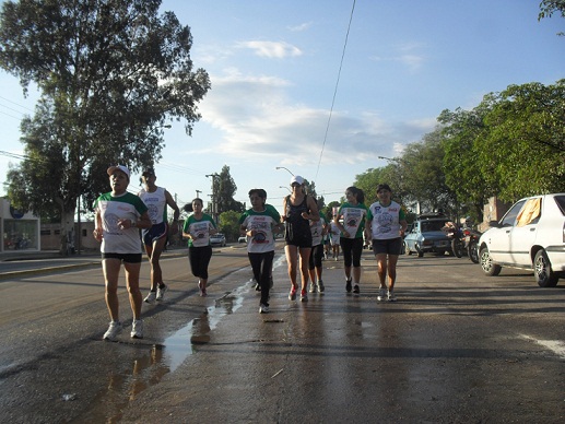 Luego de elevar oraciones al Altísimo, y recibir la bendición del Padrecito Salas, con un grito fuerte de VIVA LA VIRGEN, a cargo de Marta Fernández, el nutrido grupo de atletas comienza su peregrinación por calle Sarmiento al Norte, acompañados por el aplauso y grito de muchos peregrinos. La Bandera Argentina va flameando al frente en una jabalina de caña, portada por Carlitos Bracamonte y Roberto Farías, escoltada por Nicolás Barrionuevo y Antonio Vera. Entre la suave lluvia de la mañana se van sumando algunos peregrinos que también ven hacia la montaña, algunos en bicicletas; cuando ya en la calle Sarmiento, María Orellano pasa al frente con Sarita Espeche manteniendo en alto nuestra Bandera, mientras el matrimonio Luis Castillo y Claudia Carrizo van cerrando la columna que ya avanza por sobre la Av. Virgen del Valle, donde cuando en cuando va saliendo una plegaria del matrimonio de Panchito Cejas y Ramonita Ibáñez, que la repiten mas despacito Laurita y Ximena que se unieron a este desafío. Pasando la Plaza de Choya, Gladys Pacheco y Daniel Brizuela, van buscando la forma de ayudar y alentar a Carlitos Carreño, que ya se está queriendo cansar un poquito. Más adelante Alejandra Baraza y Mariana Basso comienzan la leve trepada un poco más pronunciada y empiezan a sentir el cansancio, mientras que Santiago Arroyo, Vanesa Carrizo y Pablo Álvarez, avanzan con paso bien parejito, entre tanto, en la punta de la marcha, Victoria Coronel comienza es la abanderada por unos metros, aparece más atrás Miriam Breppe y Mechi Córdoba que ayudan a Valeria Herrera con su “pancita” de cuatro meses, que no paro en ningún momento, mientras que Juan López y Jesús Maza abastecían al grupo a lo largo del recorrido y José Brizuela, que representaba a su padre “Mocito” que no pudo asistir.