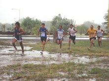 De este modo una vez que se escuchó la cuenta regresiva y que se bajó el banderazo a cargo del Profesor Dimas García, partió el pelotón a fuerte ritmo que no tardó en amoldarse al barro y charcos de agua.