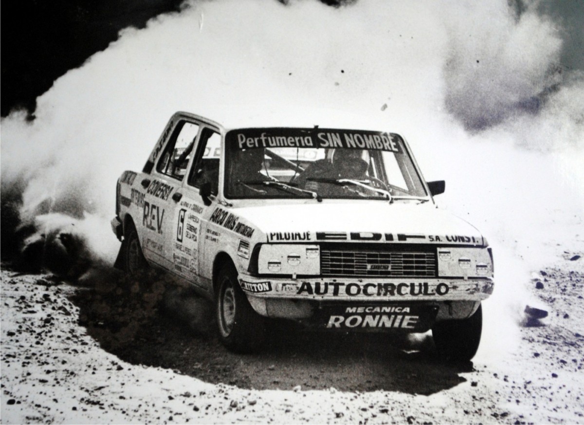 Foto: Luis Filippín y José Arévalo con el Fiat 128, Rally de Catamarca, llegando a El Portezuelo.