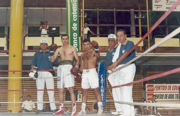 El recuerdo del ex pugilista sobre su desaparecido “maestro” fue ilustrado con una histórica foto, donde Reartes aparece, junto a su rival de esa noche en el Polideporitvo Capital, José Luis “el Ruso” Ferreyra, junto al “profe” Mema y el también histórico entrenador “Don Guty”, quienes asistían a los contendientes desde los respectivos rincones.
