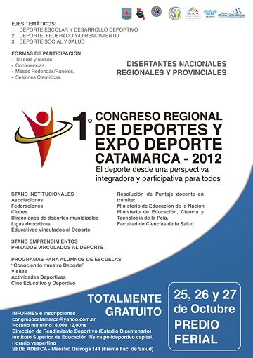 El Congreso Regional de Deporte, es totalmente gratuito y tendrá entre otras actividades, talleres cursos, conferencias y conferencias magistrales por parte de disertantes nacionales, regionales y provinciales. También se desarrollarán mesas redondas y jornadas científicas.