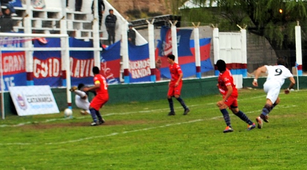 En Las Estancias, Unión Aconquija, conservó el invicto y la cima en la Zona 1, al igualar 1 a 1 con Güemes. Los santiagueños se pusieron en ventaja por medio Marcelo Quinteros (43’PT, en contra), y en el complemento empató Cristian Jeandet (12’ST, fue su 5to. gol en el certamen), con un certero cabezazo. Sobre el final el árbitro riojano Gustavo Reinoso anuló un gol de Jeandet, por supuesta falta al arquero Eduardo García, que provocó la airada reacción del entrenador “estanciero” Ricardo González. En las fotos, el gol de Aconquija, y su autor Jeandet.