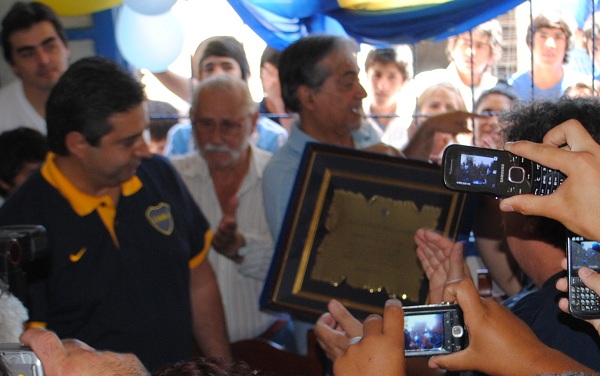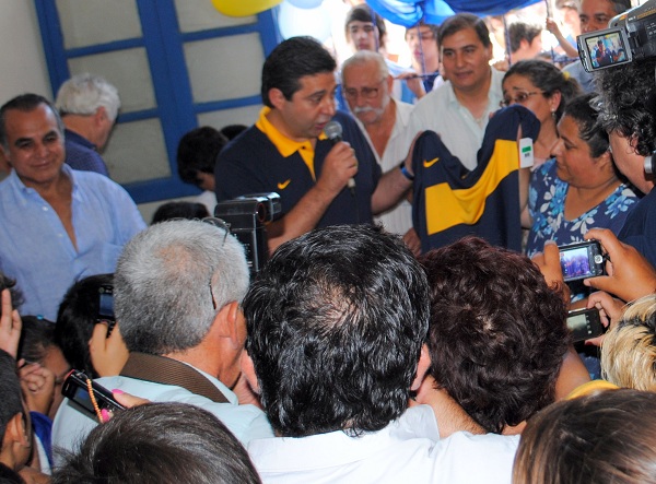 En la ocasión, tras las palabras del Dr. Zelaya, que recordó con alegría “mis orígenes chacareros, de andar por estos callejones”, Angelici entregó primero una enorme plaqueta que testimonia el sensible momento, y luego depositó en la mesa que los recibía cajas y envoltorios con las flamantes camisetas “azul y oro”, como las de color blanco con vivos azules y amarillos, y resplandecientes pelotas, como las que los jugadores de Boca utilizarán esta noche, desde las 20.30 hs., en la final de la “Supercopa Argentina”, en el estadio Bicentenario, frente a Arsenal de Sarandí.