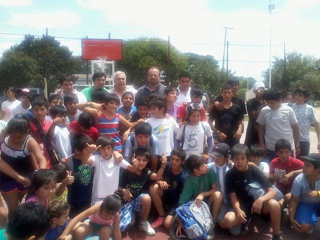 Luego del sencillo acto, el Secretario, junto con el Director de Deporte Social el Intendente y demás funcionarios jugaron un partido de básquet con los niños de la Colonia de Vacaciones, para luego hacer entrega de una serie de elementos deportivos para los mismos, consistentes en flotadores para la pileta y pelotas de básquet, vóley y fútbol.