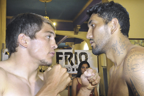 En la foto, Elio Trosch y Abraham Bulacio durante la ceremonia del pesaje, ayer en Santiago. (Gentileza, El Liberal).