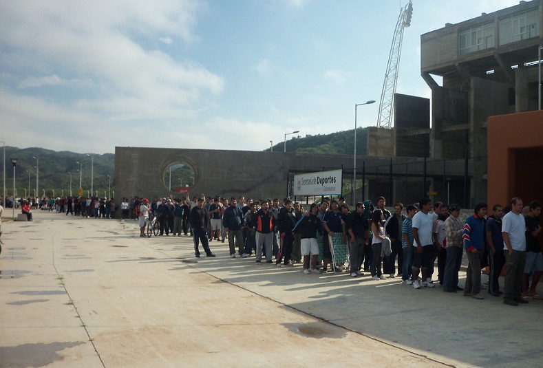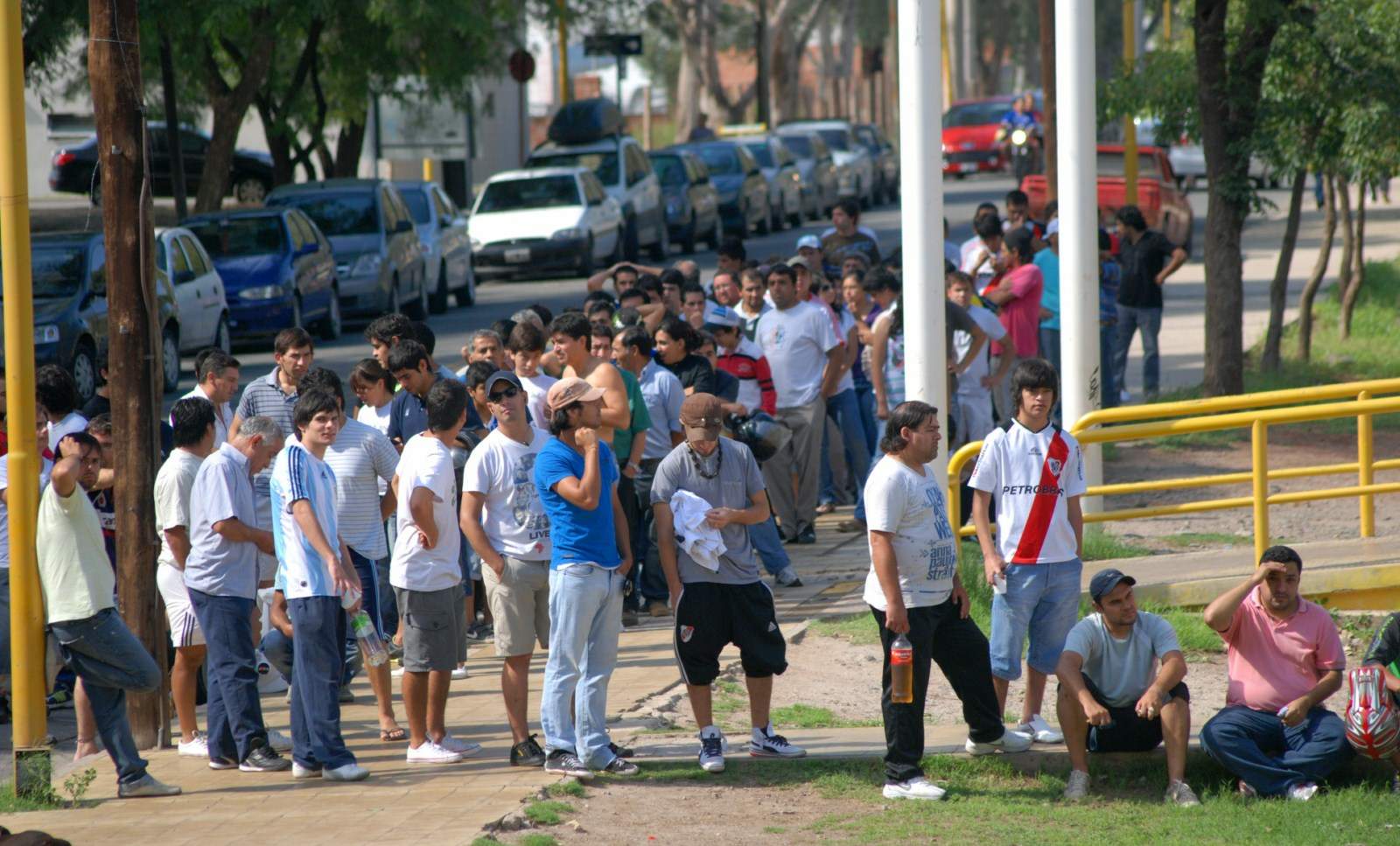 En el estadio Bicentenario, en el Polideportivo Capital y en el Club Social, los hinchas realizan por estas horas largas colas por un ticket.