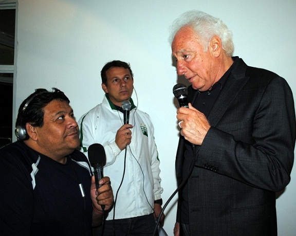 “Y si no, fíjense en esos chicos de ‘Tribunas Blancas’ que pueden venir a compartir este espectáculo en forma gratuita”, le decía a unos colegas radiales, señalando la pose del equipo de Policial, junto a algunos de los chicos presentes y el cartel que promociona el convenio logrado por el propio Cópola.