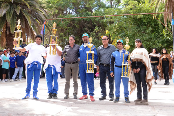 En la foto de la premiación, los ganadores Seleme/Tosi, y sus escoltas Arce/Echevarría, junto al intendente “belicho”, el “Nolo” Ávila, que se brindó como un excelente anfitrión para concretar el exitoso regreso del rally provincial a Belén, después de 10 años.