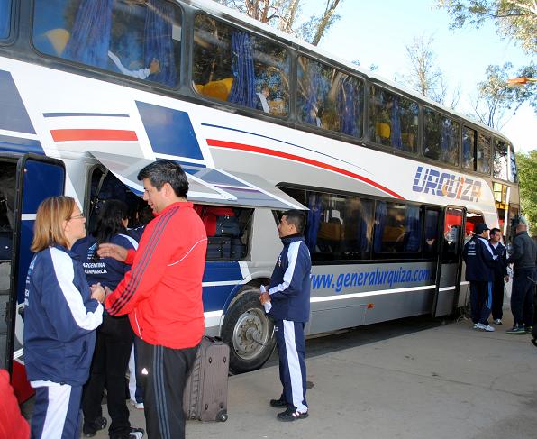 El viaje por vía terrestre llevará inicialmente al contigente de atletas y entrenadores hasta el Aeropuerto Internacional de Ezeiza "Ministro Pistarini", en Buenos Aires, desde donde por vía aérea (por decisión de la Gobernadora de la Provincia, Dra. Lucia Corpacci) se trasladará a la ciudad de Lima, capital de Perú, antes de que cada delegación sea distribuida en su respectiva sede.
