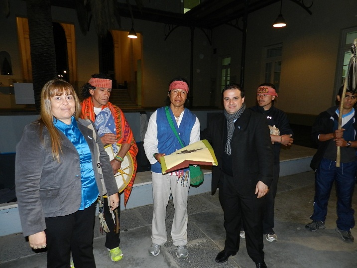 El Palacio Municipal fue testigo de una verdadera ceremonia de la que participaron autoridades comunales quienes entregaron a los maratonistas la bandera de la ciudad. El grupo de corredores y de la comuna, compartió una ronda de profundo silencio en el que el representante de los corredores dirigió sentidas reflexiones acerca de la realidad americana y de la necesidad de unidad de los pueblos.
