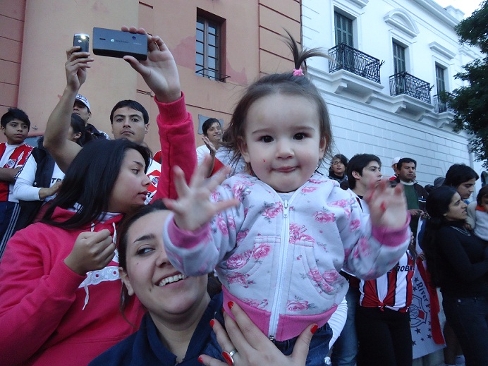 Los más pequeños estuvieron presentes en el festejo con tonada catamarqueña que se desató luego del triunfo de River frente a Almirante Brown que le dio el título y el ascenso a la primera división al equipo de Matías Almeyda.