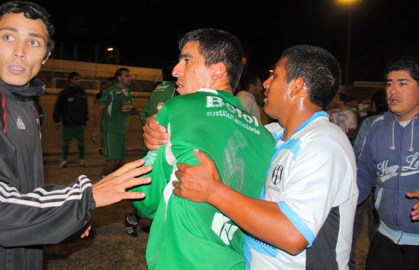El partido Parque Daza-Ferrocarriles de Chumbicha fue suspendido esta noche, a los 37 minutos del segundo tiempo, cuando estaba igualado 0-0, a raíz de serios incidentes entre los jugadores de ambos equipos, que motivó la decisión del árbitro Omar Vaquel. La interrupción, que seguramente motivará un severo informe del referí, complicaría las chances del “parquense” que vería alejada la posibilidad de acceder al “petit” final.