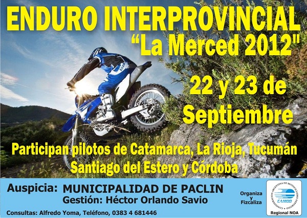 Por el apoyo brindado para la concreción de esta prueba, desde la CAMOD, Regional NOA, se agradeció al Intendente de Paclín, Orlando Savio y al director de Deportes de esa municipalidad, Pablo Savio. La competencia se corre por el GP “Municipalidad de Paclín”.