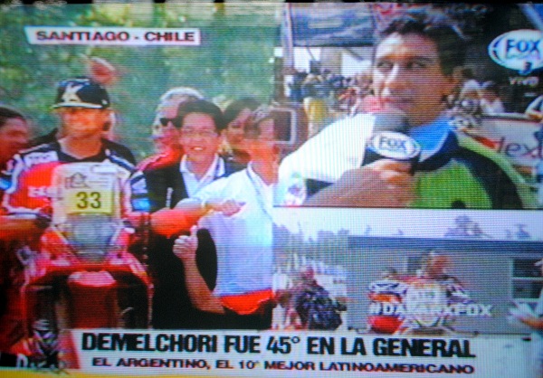 Asimismo, y como lo destacó la trasmisión oficial del Rally Dakar, a través del canal FOX Sports, directamente desde la capital chilena, Santiago, Demelchori fue el 10mo. mejor latinoamericano.