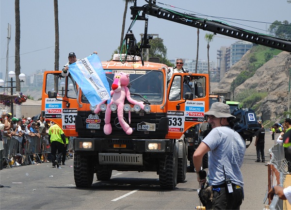 D’Agostini largo con el número 533 en los laterales de su camión, en la zona de los Chorrillos, Miraflores, desde donde los vehículos ya comenzaron su parte deportiva que los depositara en la jornada de hoy en Pisco, a casi trescientos kilómetros de la capital peruana, Lima.