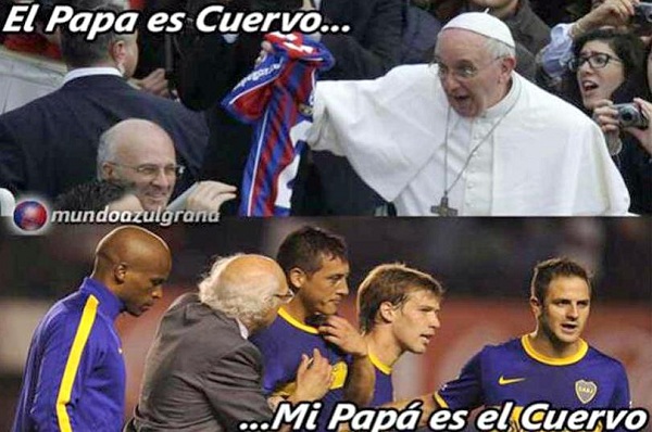 Por supuesto que no faltó el Papa Francisco y las chanzas a \"Chiqui\" Pérez, que falló un penal para el equipo de Carlos Bianchi que podría haberle dado la igualdad sobre el final del encuentro.