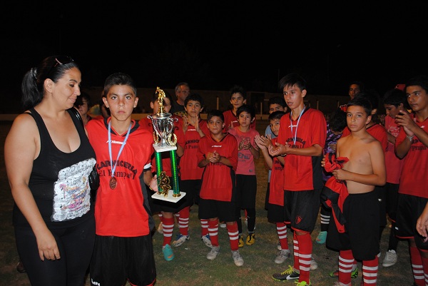 Apenas concluido el encuentro, en la misma cancha de Defensores de Esquiú, en Piedra Blanca, Fray Mamerto Esquiú, donde tuvo lugar la final, el presidente de la Liga Chacarera de Fútbol Juan Carlos Sarmiento y la titular del DFI (Departamento de Fútbol Infantil) procedió a la entrega de los trofeos al campeón y el subcampeón, como a las medallas que premio a los goleadores de la categoría, en este caso dos chicos “rojinegros”: Román Moreno y Octavio Cazuza.