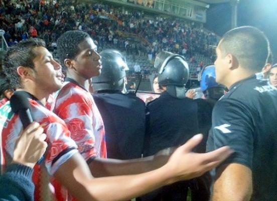 En esa oportunidad, por la explosión de una bomba de estruendo en un sector de la platea techada del estadio “Bicentenario”, que provocó serias lesiones a algunos espectadores del encuentro, el árbitro Juan Jerónimo Toledo suspendió el cotejo. Recuérdese que el artefacto había sido lanzado desde la tribuna Norte, ocupada por la propia parcialidad del “Altiplano”.