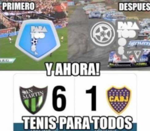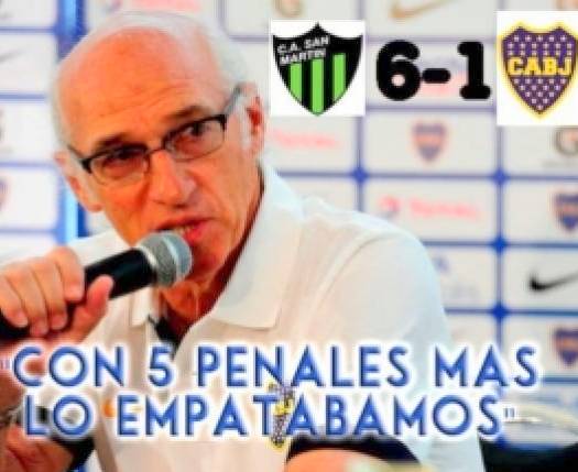 Luego de la goleada padecida ayer por 6 a 1 en ante el San Martín sanjuanino, un equipo seriamente comprometido con descenso, los hinchas xeneizes ahora sufren las bromas de los otros clubes, quienes gozan del papelón que sufrió el equipo de Carlos Bianchi. En este caso, el ingenio popular vuelve a estar presente, tal como viene sucediendo fecha a fecha con los diferentes equipos.