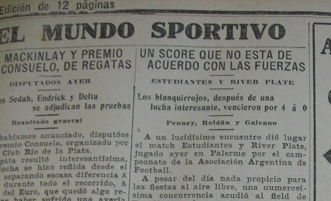 HISTORIA: Recorte periodístico de 1913, tras un cruce entre River y Estudiantes.