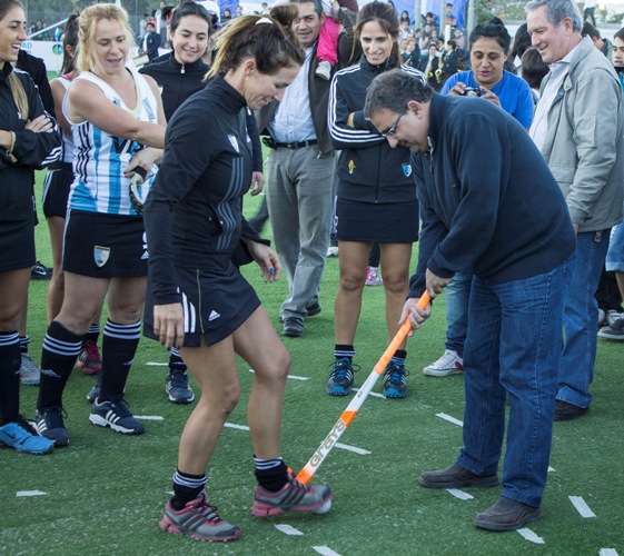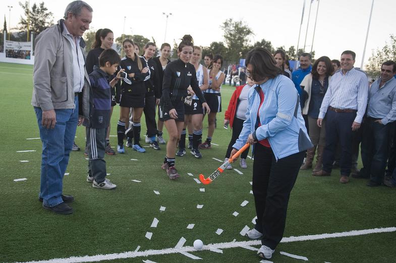 Las autoridades abrieron junto a Las Leonas y al equipo local Catamarca Ciudad la entrada a la cancha. La gobernadora, el intendente Jalil y el vice gobernador Dalmacio Mera fueron los encargados de dar los primeros tacazos en el fulgurante verde en donde luego se disputó el partido inaugural: Las Leonas vs. Catamarca Ciudad.