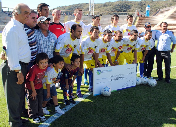 De la entrega, en momentos que el equipo “auriazul” salió a la cancha del estadio “Provincial Bicentenario” estuvo a cargo del secretario de Cultura, Turismo y Deportes de la comuna, Cristian Guillou; el director de Deportes, Sergio Ortega; y el concejal Hernán Martel (FpV-PJ) Hernán Martel.
