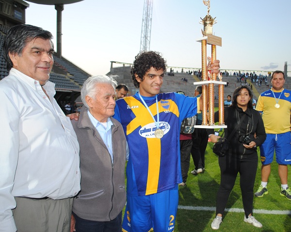 Cuando los ánimos se fueron aplacando llegó el turno de la premiación, con los dirigentes de la Federación, encabezados por el presidente a cargo, Luis Gustavo Vera, entregando las medallas plateadas a los subcampeones, y las doradas a los jugadores campeones. Seguidamente, Vera, junto al secretario de Deportes, Maximiliano Brumec, entregaron el trofeo al capitán de Racing, Mauricio Lassa; en tanto que Don Luis Rodríguez, el tinogasteño que a través de sus funciones como “primer secretario general” de la refundación federativa, depositó el premio para el campeón, en manos del capitán “auriazul” Daniel Molina.