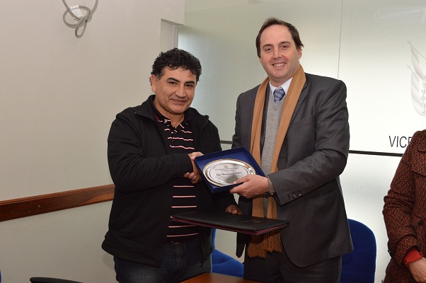 Junto al vicegobernador y presidente de la Cámara alta provincia, se reunieron el presidente de la Liga Chacarera, Juan Carlos Sarmiento, y la vicepresidente, Ana María Lobo oportunidad en la que les hizo entrega de una placa recordatoria y un subsidio para hacer frente a las necesidades del establecimiento.