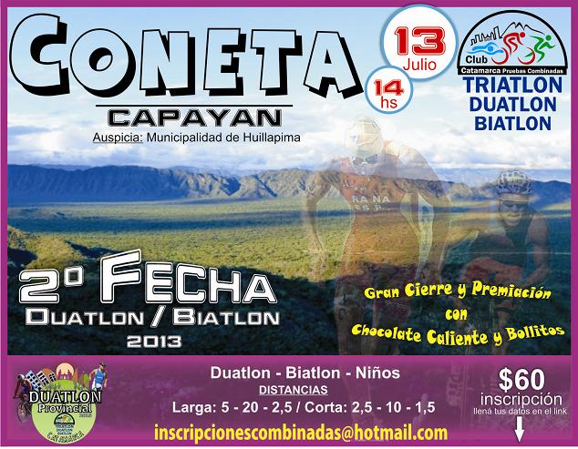 Esta carrera tendrá como escenario al pueblo de Coneta, distante a 17 km de nuestra ciudad capital, por ruta Nacional Nº 38. La logística del circuito será por ruta Provincial Nº 5 uniendo ambas plazas del colorido lugar.
