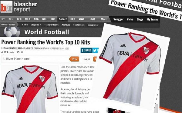 El sitio Bleacher Report, especialista en deportes y márketing y editado en los Estados Unidos, realizó una elección entre los mejores "kits" de equipación del fútbol mundial y decidieron que la de River es la más linda.