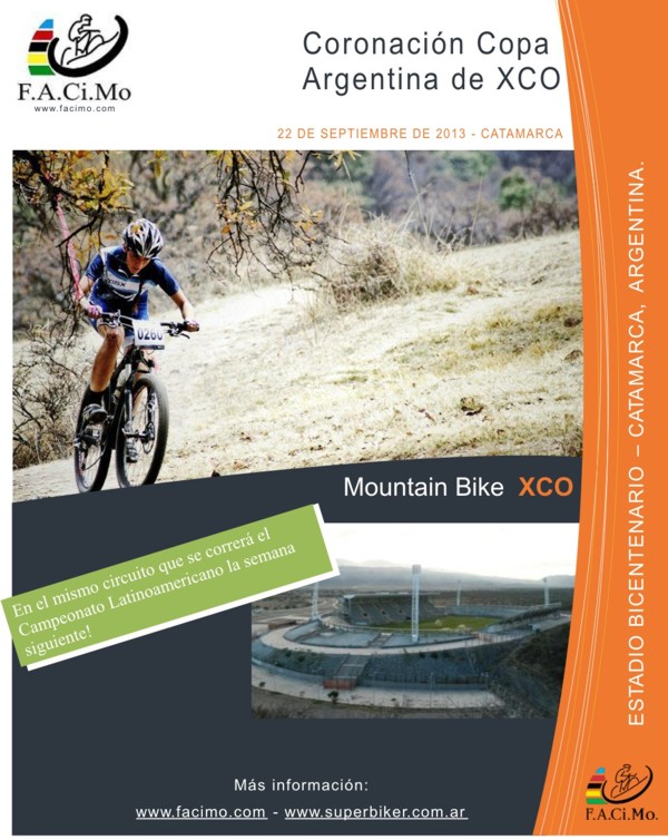 La prueba, que cuenta con la organización y fiscalización de la Federación Argentina de Ciclismo de Montaña (FACIMO) Bike, que preside José “Pepe” Martínez, es auspiciada por la secretarías de Deportes y de Turismo de la Provincia, conjuntamente con la Dirección de Cultura, Turismo y Deportes de la Municipalidad de la Capital.