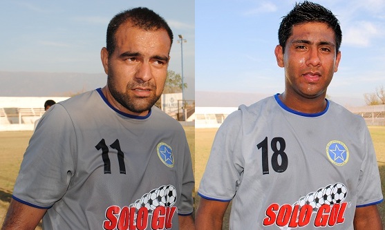 En las fotos, dos de los goleadores de esta tarde en Policial: Cristian “el Pica” Fernández y Carlos Aldonate.