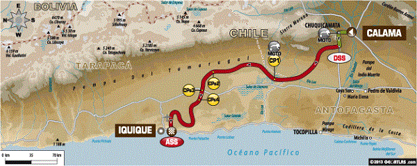 Todas las categorías compartirán hoy un trazado de 422 kilómetros que desembocará en la duna de Iquique, con un descenso vertiginoso de 3 kilómetros hacia la espuma del Pacífico. Aunque los líderes de las cuatro categorías, véanse Coma, Lafuente, Roma o De Rooy, parecen tener bien atado su liderato, no conviene olvidar que el Dakar es capaz de regalarnos jornadas épicas caracterizadas por los renaceres.