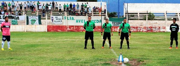 estadio "Primo A. Prevedello”, el árbitro Jesús Aldeco, junto a los líneas