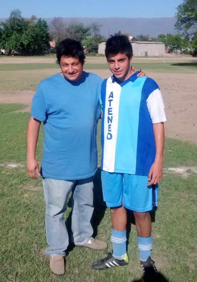 En la foto, el secretario del DFI, Javier Vizzoni, en una de sus recorridas por las canchas donde juegan las inferiores, junto al jugador Nahuel Cano.