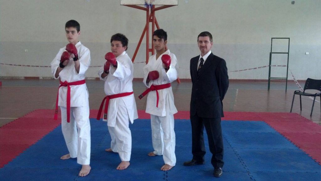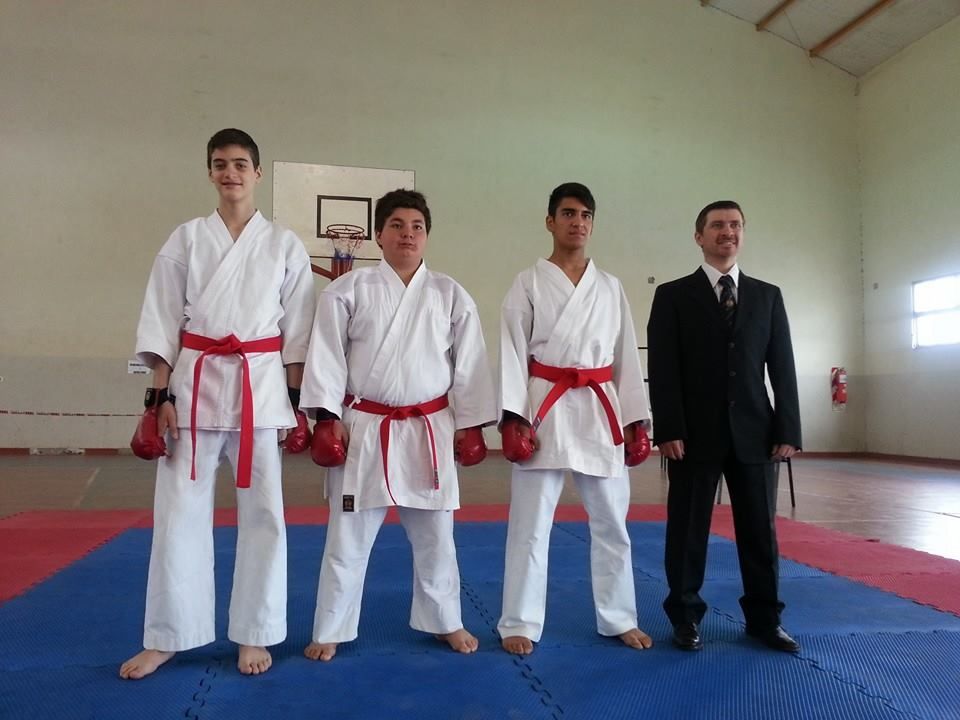 Los 3 karatekas coordinados por el Sensei Damián Bidabhere