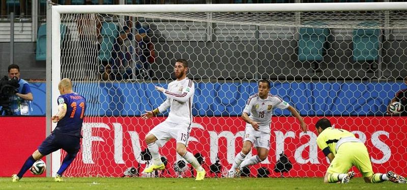 Tuvo menos la pelota, pero fue mucho más efectivo el equipo de Van Gaal, que se llevó la victoria por los goles de Van Persie (el 1-1, de palomita ante un Casillas a medio camino), Robben (linda definición para darlo vuelta), De Vrij (el 3-1 a los 20), Van Persie nuevamente (capitalizó el blooper de Casillas) y otra vez Robben, con una corrida espectacular desde atrás de la mitad de la cancha y tras dejar en el piso al pobre Casillas, nuevamente.