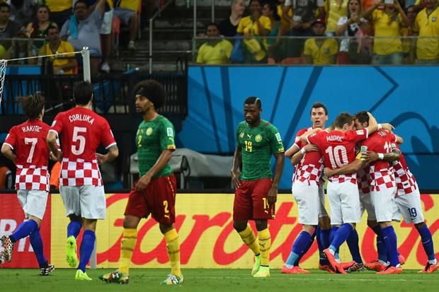 El equipo croata dominó con autoridad a Camerún, que no pudo contar por lesión con su máximo referente Samuel Eto'o. Ivica Olic abrió el marcador en el minuto 11. Tras el descanso, Ivica Perisic hizo el 2-0 (48) y Mandzukic se encargó de completar la goleada (61 y 73). Alex Song fue expulsado en el perdedor a los 40 minutos.