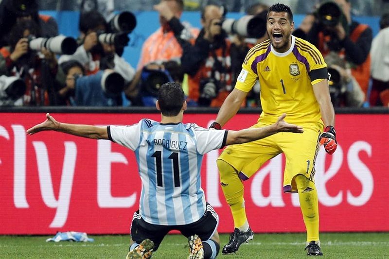 Sus atajadas de los lanzamientos desde el punto penal de Ron Vlaar y Wesley Sneijder clasificaron a la Albiceleste para la gran final de la competición y pusieron el broche de oro al excelente Mundial que hasta la fecha ha ofrecido el jugador de 27 años. El arquero del Mónaco ha mantenido su puerta imbatida en cuatro partidos, con un total de 15 paradas por el momento en Brasil 2014. En los últimos cinco años, desde que Diego Maradona lo hizo debutar en el fútbol internacional, se ha convertido en titular indiscutible de la selección de Argentina.