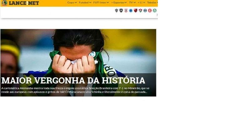 El diario Lance, uno de los más leídos en el país organizador tituló: "Mayor vergüenza de la historia”. Además, agregó: "El Maracanazo literalmente es cosa del pasado”.