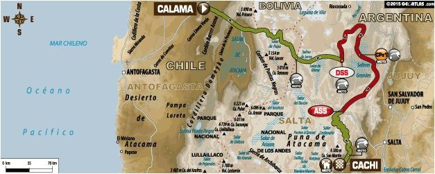 Las categorías de quad y moto acometen hoy su segunda etapa maratón. Después de atravesar la frontera entre Chile y Argentina, el comienzo de la especial tendrá lugar en las Salinas Grandes, a más de 3600 metros, en Jujuy. La altura podría aplacar los ánimos y los motores por igual. Los más fuertes se verán las caras en una parte final muy técnica.