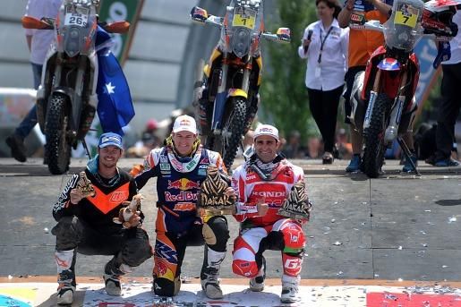 El podio del Dakar 2015 en motos fue completado por el portugués Paulo Goncalves (Honda), quien terminó a 16m35s del campeón, y por Price, tercero a 23m14s.