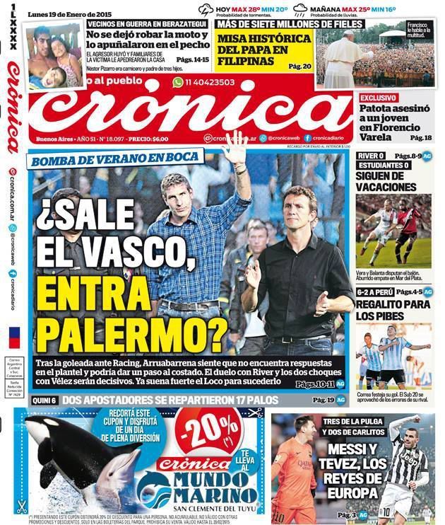 En los últimos tiempos hubieron muchos cambios en la Ciudad de Buenos Aires. Ahora parece que La Boca se va a mudar a Palermo. ¿O será al revés? ¿Palermo a Boca...?, escribió el diario Crónica de Buenos Aires, incluyendo la noticia como su principal título en la portada de hoy.