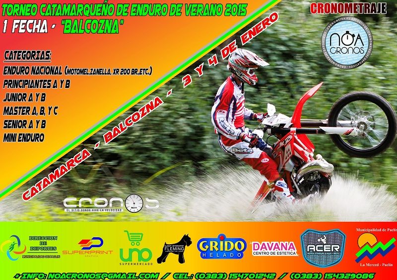 La prueba está destinada a las categorías Enduro Nacional (Motomel, Zanela, XR 200 BR, etc.), Principiantes A y B, Junior A y B, Máster A, B y C, Sénior A y B, y Minu Enduro; en tanto que el cronometraje fue confiado a la agrupación "NOA Cronos”