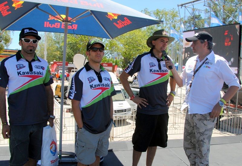 La tarde de ayer en el Village Dakar se completó con dos compromisos con la prensa, de esta manera, el RPM Kawasaki participo de la presentación de Total – Elf donde asistió junto a los pilotos y ademas participo ante una multitud de una completa nota que le realizo el locutor oficial del evento, Mariano Ianaconne ante una multitud que se encontraba en ese momento en Tecnopolis.
