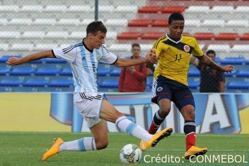 Jarlan Barrera Escalona, de tiro penal, abrió la cuenta para los colombianos, al tiempo que igualó Lucio Compagnucci, ambos en la parte final del cotejo jugado en el estadio del Parque Central, en Montevideo.