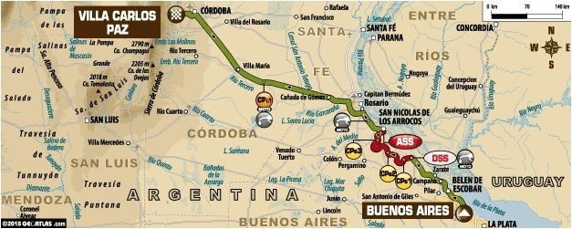 El rally se divide en 14 etapas, la primera de las cuales está uniendo Baradero, provincia de Buenos Aires, con Villa Carlos Paz, Córdoba, en un recorrido de 838 kilómetros, con un primer tramo especial corto, de 176 km, y seguirá el lunes hacia San Juan, esta vez con 107 km de enlace y 518 km de competencia cronometrada, en lo que será el primer desafío a afrontar por los competidores.