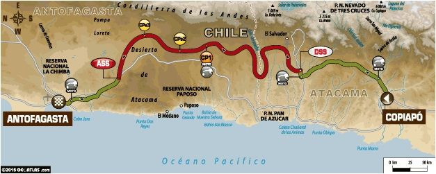 Además, esta será la primera de las pocas especiales con el mismo trazado para todas las categorías. Los pilotos con más confianza al frente de la carrera podrán aprovechar las pistas rápidas para intentar escalar puestos en la general, pero cuidado, porque los errores se pagarán carísimos. Sobre todo en las zonas en las que podría indigestarse el fesh-fesh y donde se pondrá a prueba la sangre fría de los pilotos. A la hora de adelantar, la precisión deberá ser extrema.